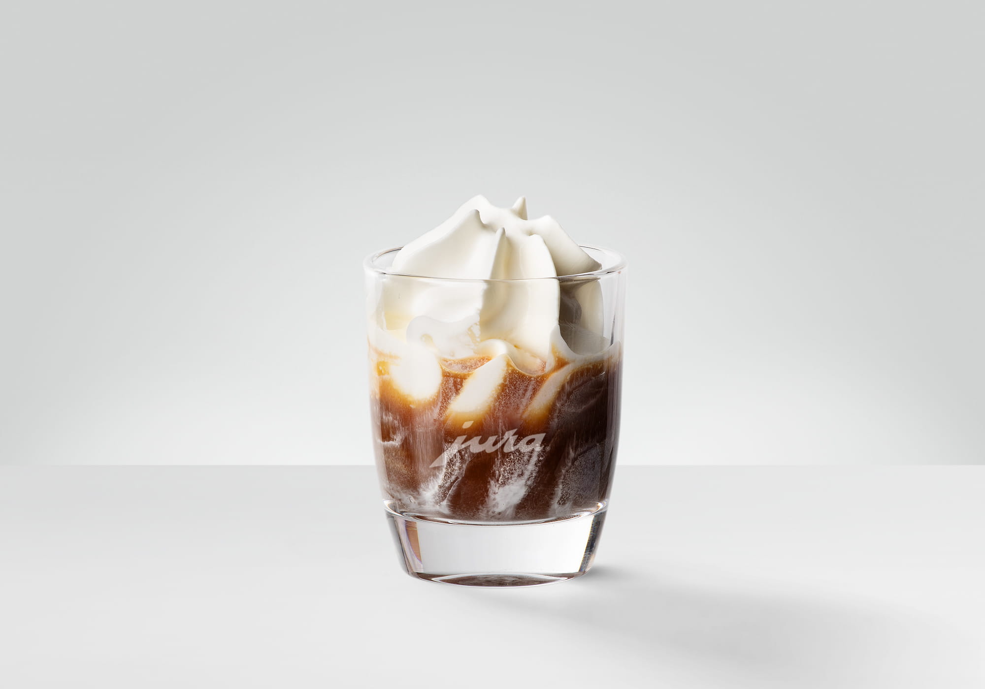 Produce whipped cream as usual and half-fill an espresso glass with the whipped cream.