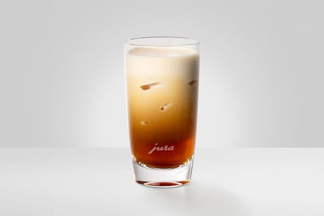 With the Z10, you can enjoy the ultimate indulgence of Cold Sweet Nitro in just a few steps. Once you have filled the syrup attachment and attached it to the dual spout, place the metal tube with the adapter in the latte macchiato glass. For a genuine taste experience, fill the glass with ice cubes and make sure that the metal tube remains vertical and the adapter is positioned on the rim of the glass. Then connect the adapter to the automatic coffee machine with the silicone tube and prepare a Cold Brew flat white. The adapter contains the process that adds nitrogen to the Cold Brew and delightfully creates the Nitro Coffee.