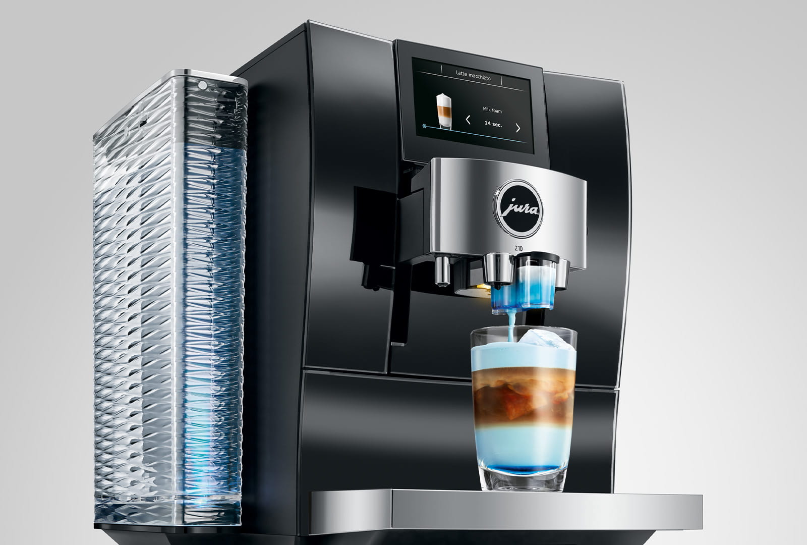 To ensure the optimum grind for every speciality, JURA engineers developed the Product Recognising Grinder (P.R.G.). The electronically controlled high-performance grinder adjusts in a fraction of a second to the predefined consistency of grind – much more quickly and frequently than could be done manually. Its spectrum ranges from very fine for short classics to very coarse for long specialities. But coffee lovers don’t need to worry, because the adjustment takes place automatically every time a beverage is prepared and, if preferred, can also be individually selected before each preparation with the Aroma Selection feature.